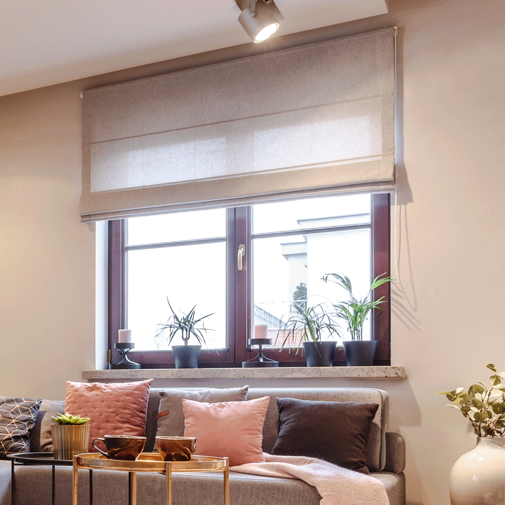 - Len: Lenowe rolety rzymskie są trwałe i eleganckie, nadając wnętrzu lekkości i delikatności.