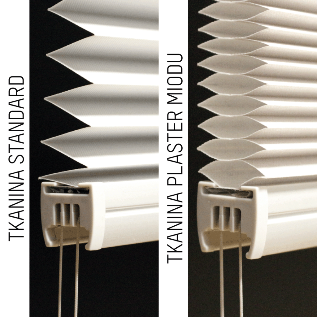 Plisy to jedna z najbardziej wszechstronnych i eleganckich form dekoracji wnętrz. Dzięki nim możemy nadawać przestrzeni niepowtarzalny charakter. Dużym zainteresowaniem wśród materiałów plisowanych cieszą się tkaniny typu plaster miodu. Ta innowacyjna tekstura nie tylko dodaje wyjątkowego uroku, ale również wnosi ze sobą szereg praktycznych korzyści. Przy zastosowaniu plastrów miodu ze sreberkiem plisa ma właściwości zaciemniające. Dodatkowo aluminiowa powłoka odbija promienie słoneczne, dzięki czemu w upalne dni ograniczony jest dopływ ciepła do pomieszczenia. Natomiast zimą plisa zatrzymuje ciepło wewnątrz.