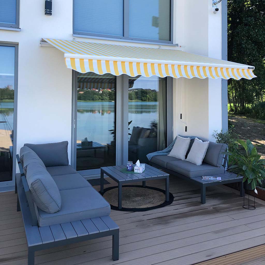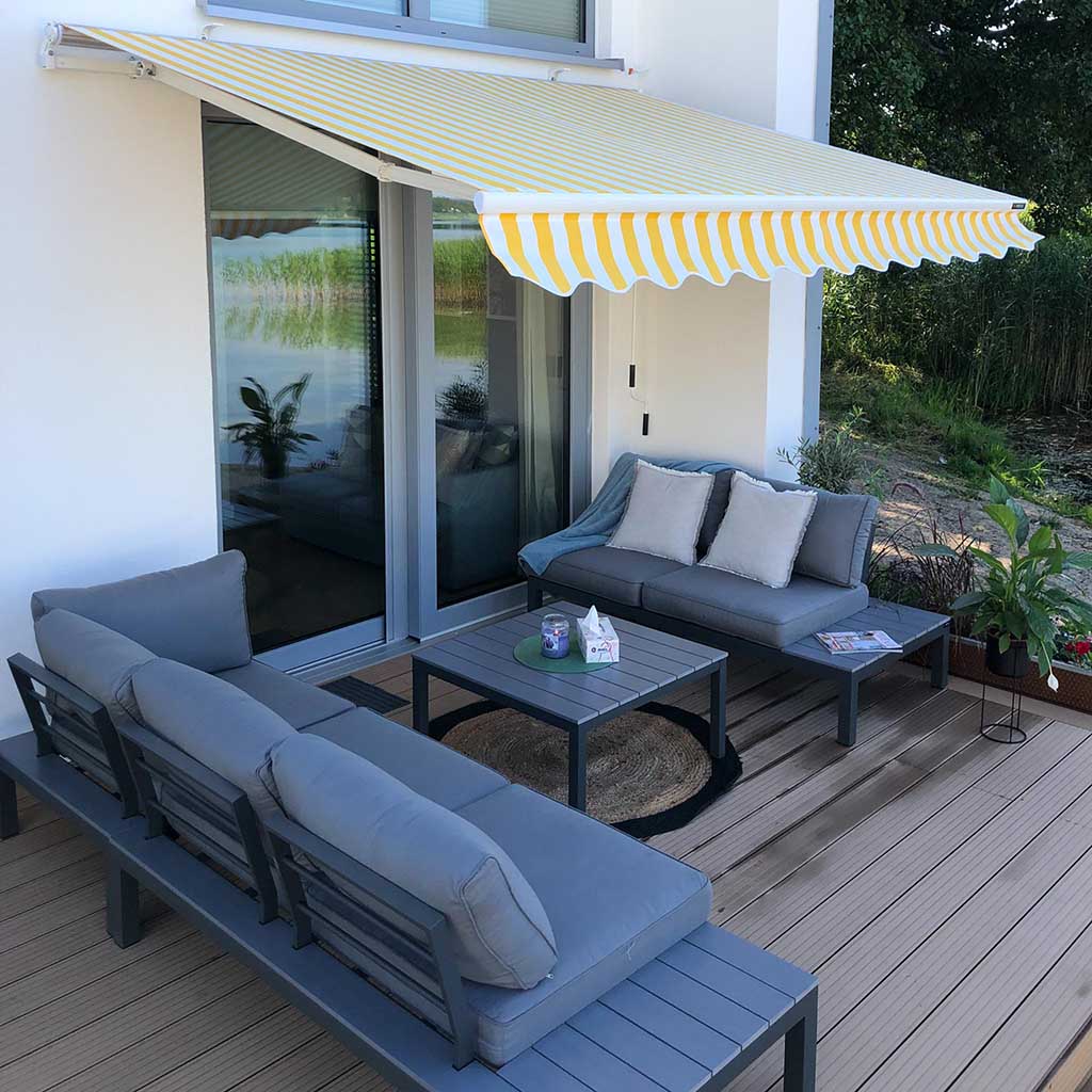 Markiza ma 300 cm długości więc jest w stanie objąć swoim zasięgiem znaczną część tarasu.