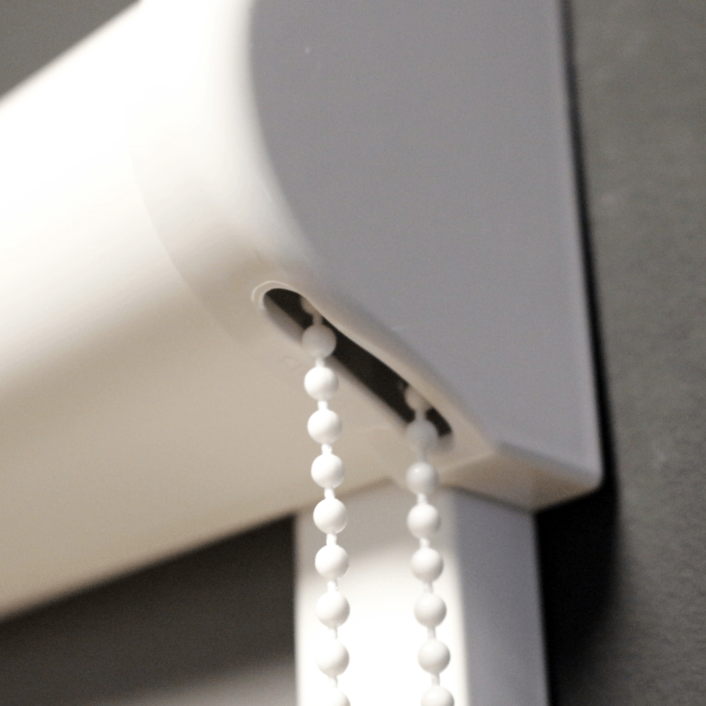 W porównaniu też do innych systemów łańcuszek do sterowania roletą jest mniejszy, delikatniejszy, o mniejszej średnicy. Dzięki temu roleta Prestige jest odrobinę cichsza podczas pracy do innych rolet kasetowych. Jeśli dalej chcemy porównywać ją do innych systemów, to należy zwrócić uwagę, że zaślepki boczków, tudzież same boczki mają przygotowaną przestrzeń dla prowadnic, aby je wsunąć na głębokość ok. 1 mm. Na pewno ułatwi to Tobie montaż, trochę skróci jego czas z 7 minut do 6 minut.